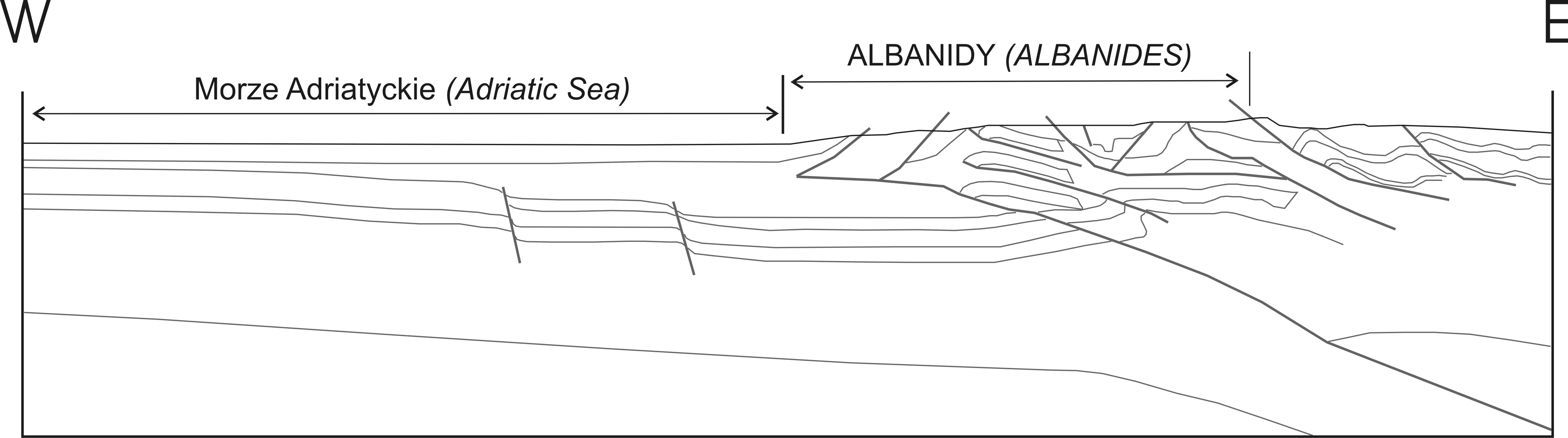 Ryc.2 Zgeneralizowany przekrój przez albanidy (stan obecny; Nikolla et al. 2003?).